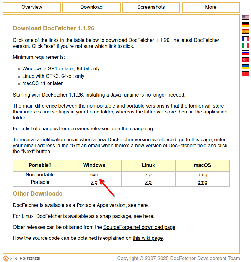 First, we are going to head over to https://docfetcher.sourceforge.io/download/.